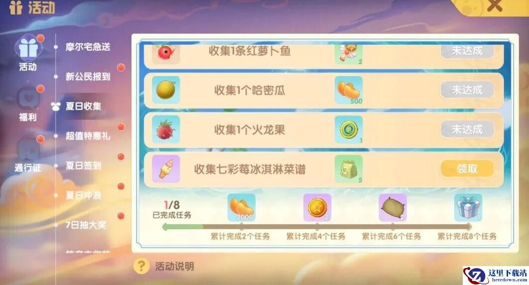 游戏中哈密瓜可以制作月亮酸奶雪糕,食谱配方是:哈密瓜x1,牛奶x1,鸡蛋x2,鸭蛋x2。另外哈密瓜是夏日收集任务之一,完成八个任务可以获取大礼包一份。