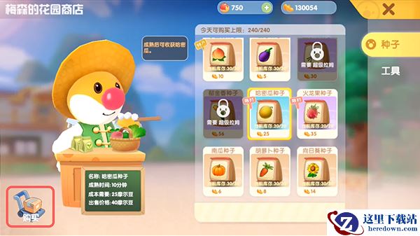 3.点击【哈密瓜种子】再点击左下角的【购买】,选择需要购买的数量即可购买。