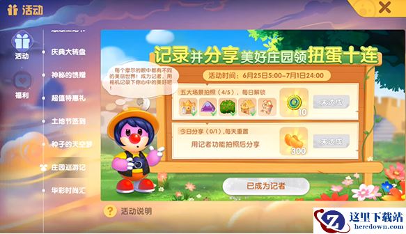 “庄园巡游记”活动需要穿着记者服装在五个地点拍照,每日解锁一个地点