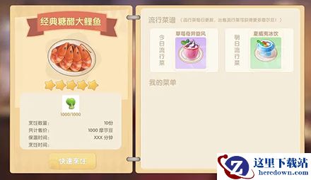 经典糖醋大鲤鱼菜谱是目前游戏中的一个BUG,在菜谱中根本没有这道菜,我们在烹饪餐厅菜打开菜谱就会出现该BUG,不过目前已经修复了。