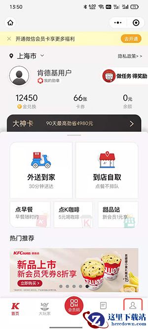 1、打开肯德基APP,点击【我的】。