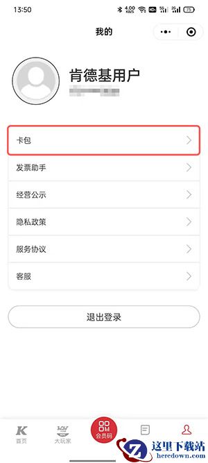 2、登录账户后,点击【卡包】。