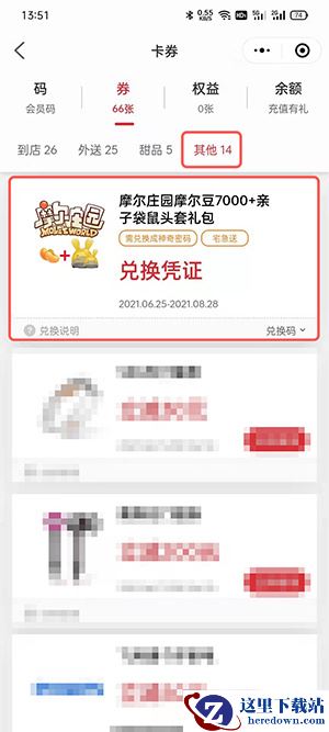 3、点击【券】,找到摩尔庄园兑换凭证。