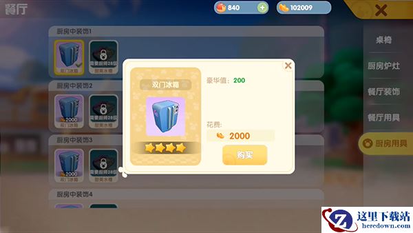 冰箱可以让餐厅的豪华值更高,一个冰箱可以增加200豪华值,餐厅中最多可购买5个冰箱,总共可添加1000豪华值,豪华值提高了可以增加餐厅的客流量,赚到更多摩尔豆。
