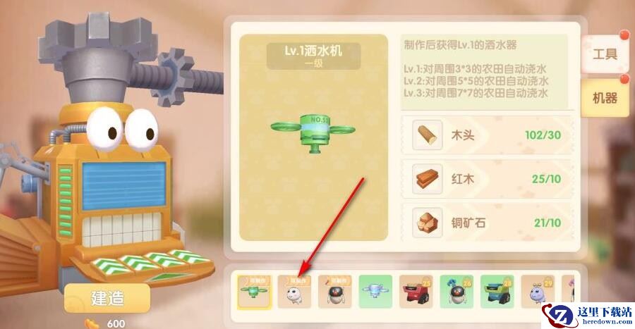 2、进入到梅森花园小店场景后,接着点击机器制造设备。