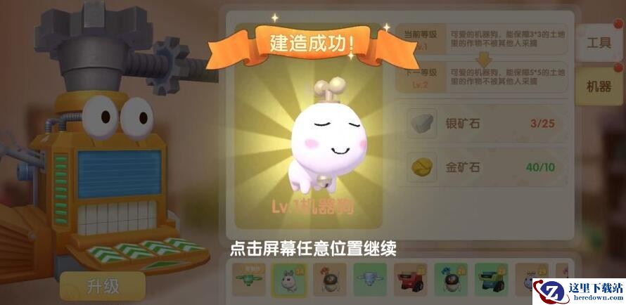 可以保护一定范围内的农作物不被别的玩家摘走。升级机器狗,还可以提高被保护的范围,具体如下: