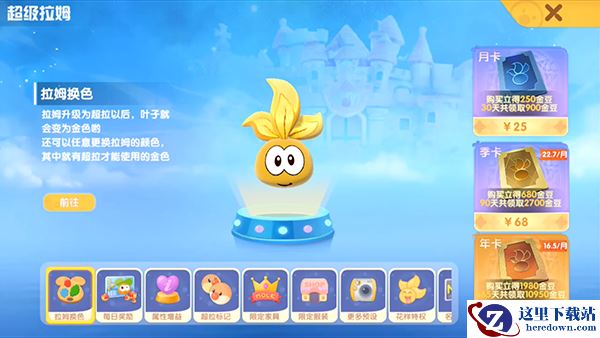 1、购买游戏中超级拉姆月卡、季卡、年卡任意一种;