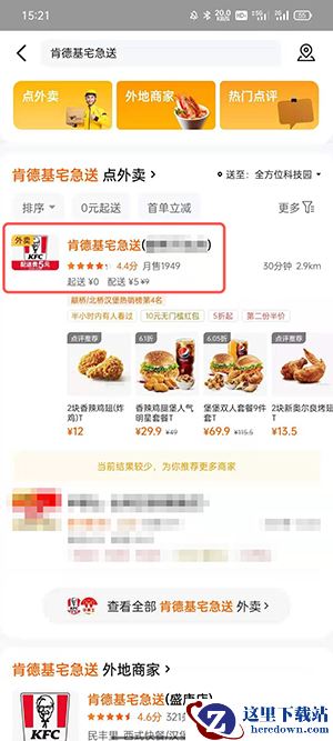 ①打开美团或者美团外卖app,搜索【肯德基宅急送】;
