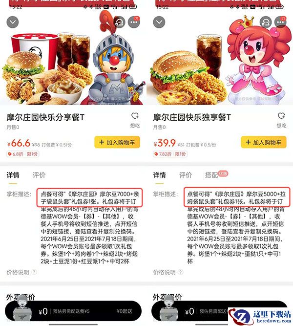 ③在活动详情中,选择需要购买的【摩尔庄园快乐分享餐T】或者【摩尔庄园快乐独享餐T】任意一个套餐;