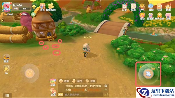 3、在桥边找到鸡窝,在鸡窝的前面会有一个垃圾,靠近后点击右侧的按钮;