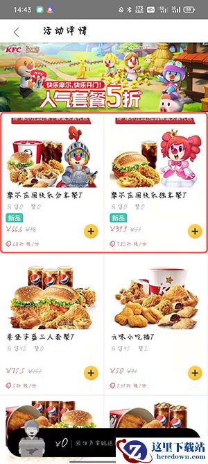 ③在活动详情中,选择需要购买的【摩尔庄园快乐分享餐T】或者【摩尔庄园快乐独享餐T】任意一个套餐;