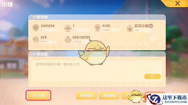 2.然后选择【进入小镇】功能,进入加入的小镇中;