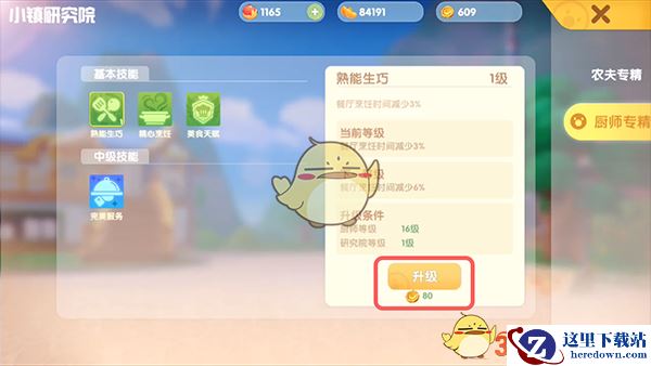 5.学习技能之后,点击下方的【升级】可提升厨师技能等级。