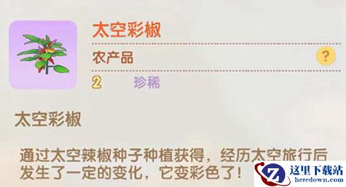 太空彩椒是种植太空辣椒时,有一定概率获得;在成熟的时候太空彩椒会呈现不一样的外观,虽然不是很明显但是的确有区别。