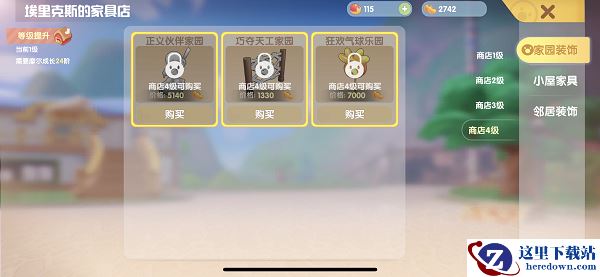 1.玩家可以在游戏主界面右上角的店铺-埃里克斯家具店-家园装饰-商店4级中找到【正义伙伴家园】;