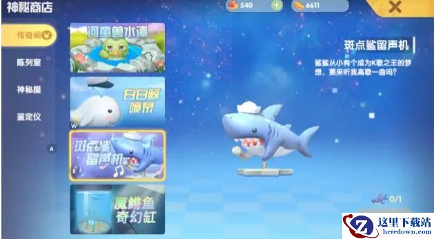 大力商人有很多的奇珍异宝,大力神秘商店共有四个部分,包括了传奇阁,陈列室,神秘屋和鉴定仪,大家在神秘商店中,可以兑换获取很多家具装饰,包括河童兽水潭,白白鲸喷泉,斑点鲨留声机,魔鳉鱼奇幻缸,还可以通过鉴定仪,鉴定未鉴定的物品。