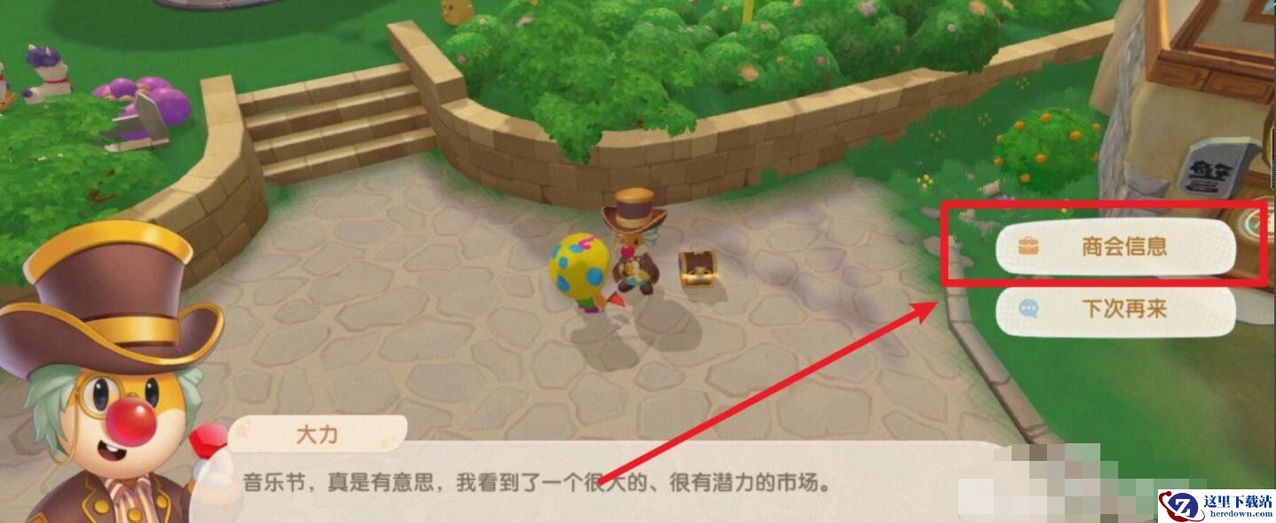 1、找到神秘商店的npc大力,与之对话对话,选择“商会信息”。