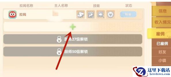 雇佣拉姆暂时是不需要花费摩尔豆的,玩家可以通过餐厅的收银台附近,右下角的管理选项,找到右侧雇佣页面,点击栏位中的“+”号来添加新的雇佣拉姆。