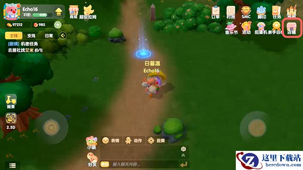 1.打开摩尔庄园手游,在右上角点击“店铺”;