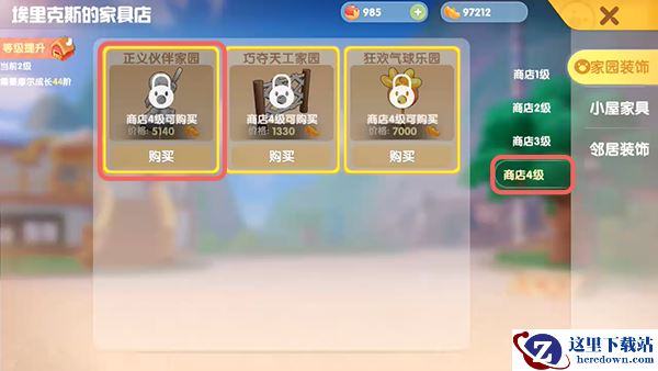 3.在右侧切换到“商店四级”,点击“正义伙伴家园”;