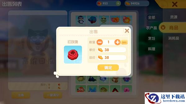 在游戏中很多资源都可以出售给花婶赚摩尔豆,红玫瑰花目前的作用只有出售和下方的制作鲜花礼包的作用的,一个红玫瑰可以出售获得38摩尔豆。