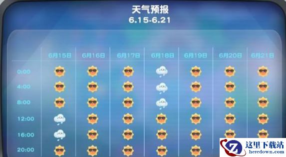 这一周的天气,除去15号和18号有雨外,其余都是大晴天,小伙伴们赶紧趁着晴天去获取自己需要的资源!