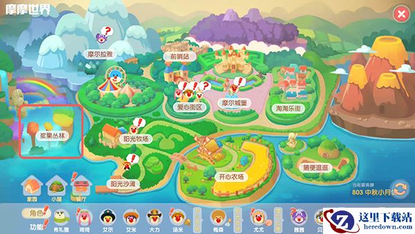 1.打开摩尔庄园手游,在游戏的右上角点击【地图】,来到【浆果丛林】;