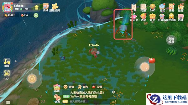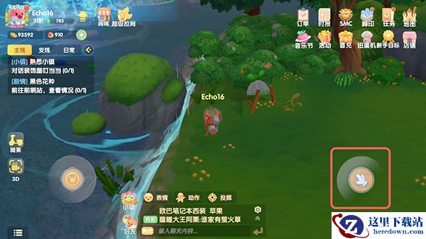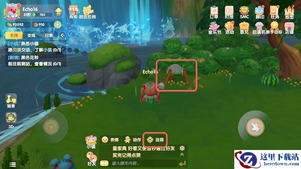 2.然后在浆果丛林靠近瀑布的位置,找到抓捕嘟噜噜的机关处,点击下方的【投掷】;
