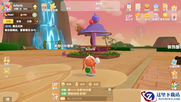 1、打开摩尔庄园手游,通过下方的【小镇】进入小镇;