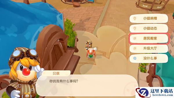 2、进入小镇之后,找到【贝琪】和其对话,选择【居民搬家】;
