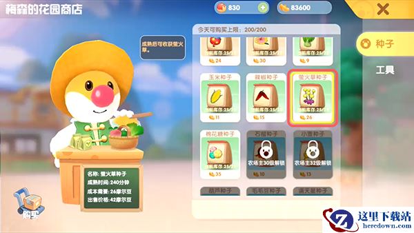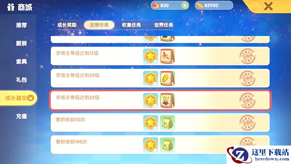 在【商城-成长基金-发展任务】中,根据需求提升农场主等级25级时,可以领取到2份萤火草种子,该方法为一次性奖励,无法重复领取。
