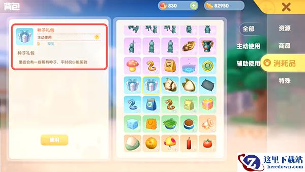 在获得种子礼包之后,通过背包的消耗品选择种子礼包,消耗礼包有概率可以获得萤火草种子;