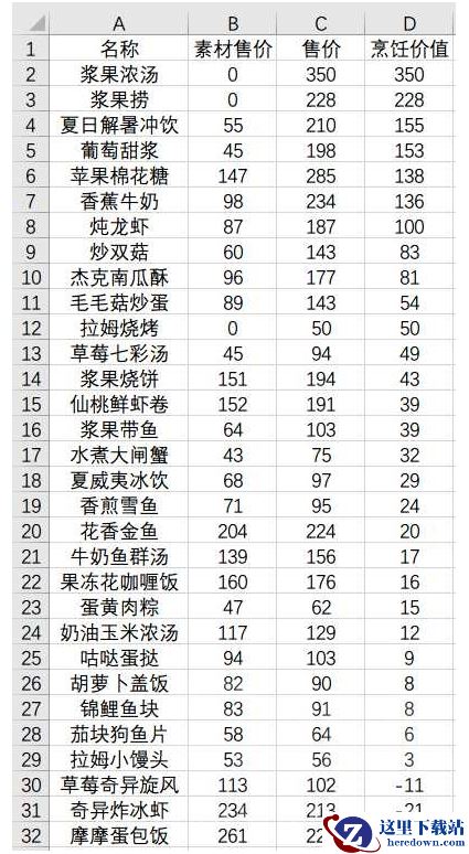 本攻略主要考虑的是烹饪价值,即农产品加工前后卖给花婶的差价,如夏日解暑冲饮,加工前直接卖给花婶是55,加工后价格是210,烹饪价值为155。