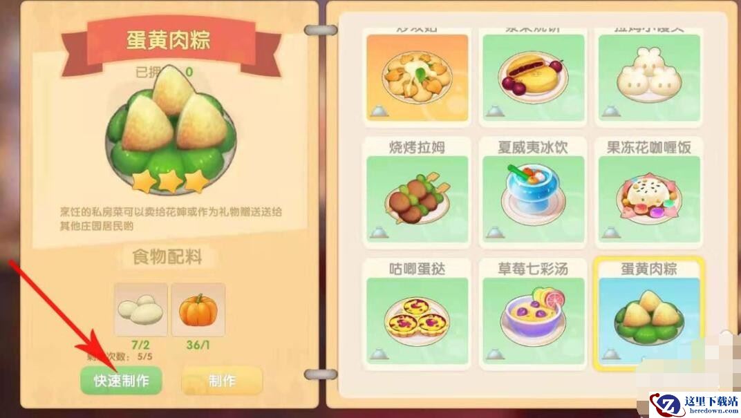 成功得到菜谱以后,进入餐厅选择蛋黄肉粽点击制作,即可成功获取蛋黄肉粽。