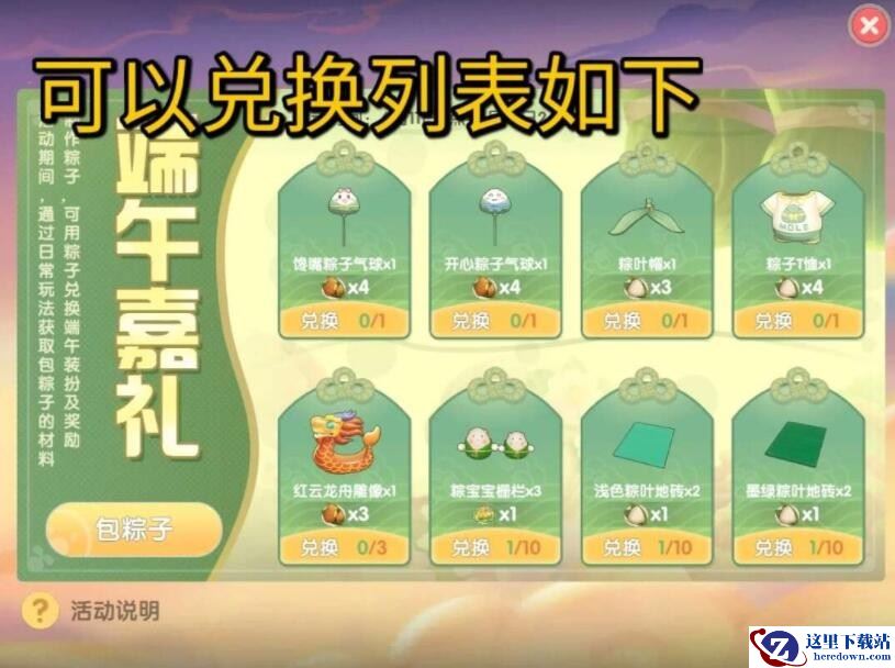 端午期间进入活动切换到端午嘉礼处制作白米粽,获取白米粽之后进入粽子兑换界面,找到粽叶帽,点击兑换即可使用3个白米粽兑换获得粽叶帽。