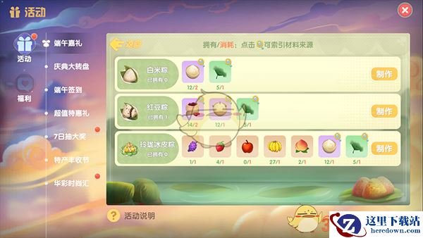3、准备好材料,点击后面的制作按钮,就可以制作不同的粽子了