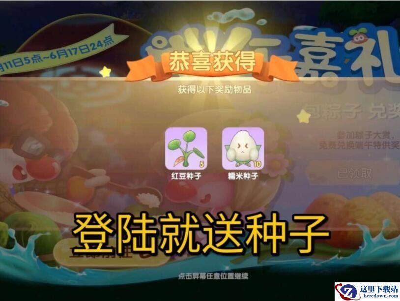 另外活动期间,登录就会有糯米、红豆种子领取。