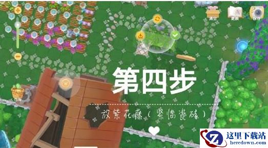 第一步,商城简约生活一栏,买入圆石板及紫花藤;