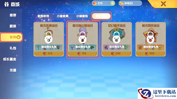 4、在商城的【家具】-【超拉限定 】中找到需要购买的【魔术帽小屋组合】;