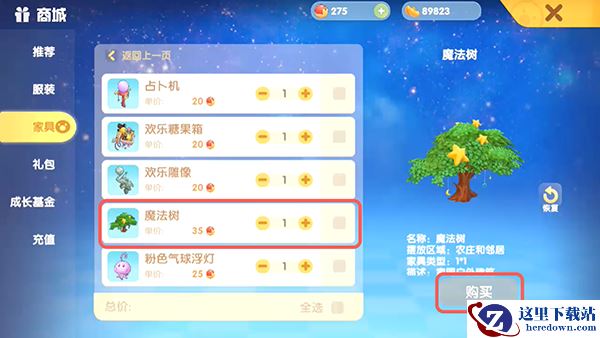 5、最后勾选【魔法树】,点击右侧的【购买】即可获得魔法树。