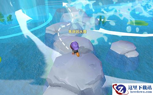 在水面上能看到这个石头路,此时玩家往前走,走过这个瀑布;