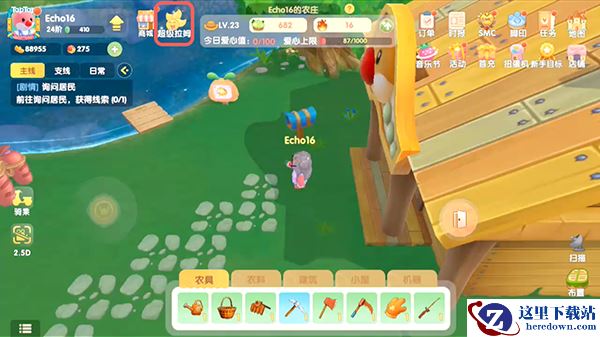 1、打开摩尔庄园手游,在游戏的左上角点击【超级拉姆】;
