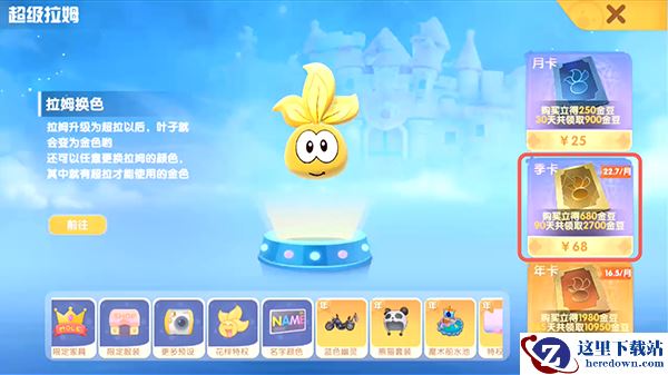 2、在超级拉姆的右侧,点击【季卡】进入购买页面;