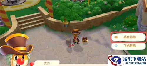 2、在爱心广场找到大力,并与之对话,这样玩家就可以选择商会信息。