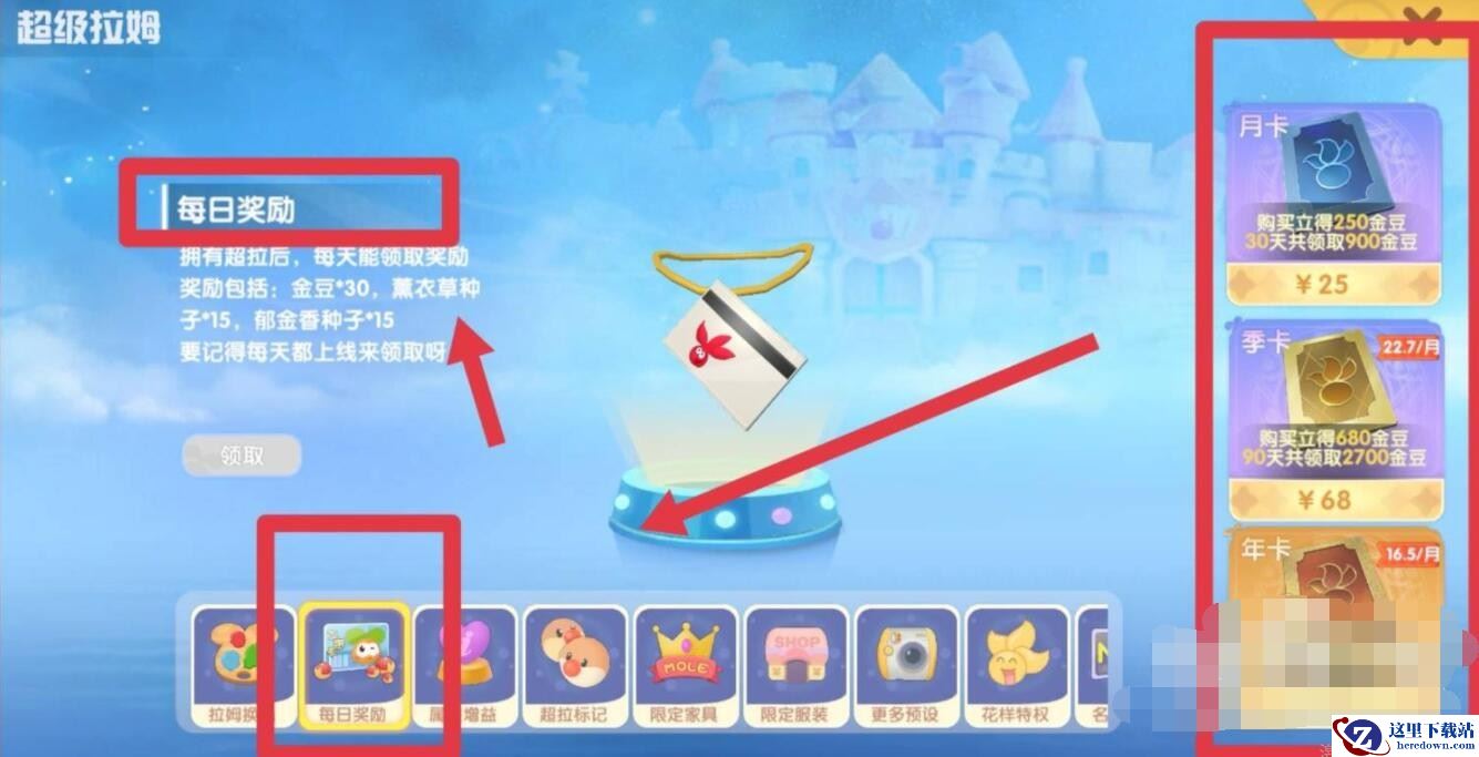 点击购买月卡、季卡、年卡后,对应的每日奖励即为超拉工资。