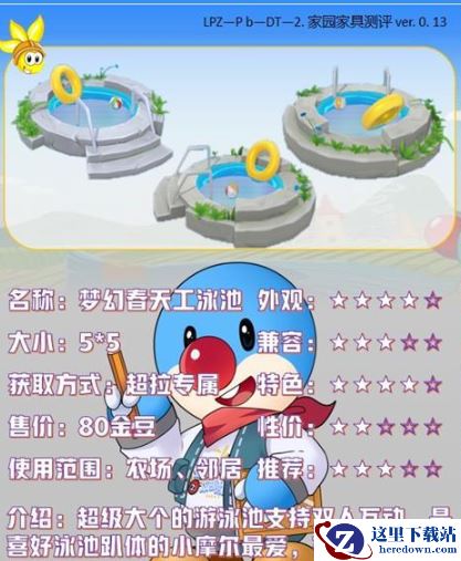 超级大个的游泳池支持双人互动,是喜好泳池趴体的小摩尔最爱,在仲夏夜的邻居广场一起游戏吧!