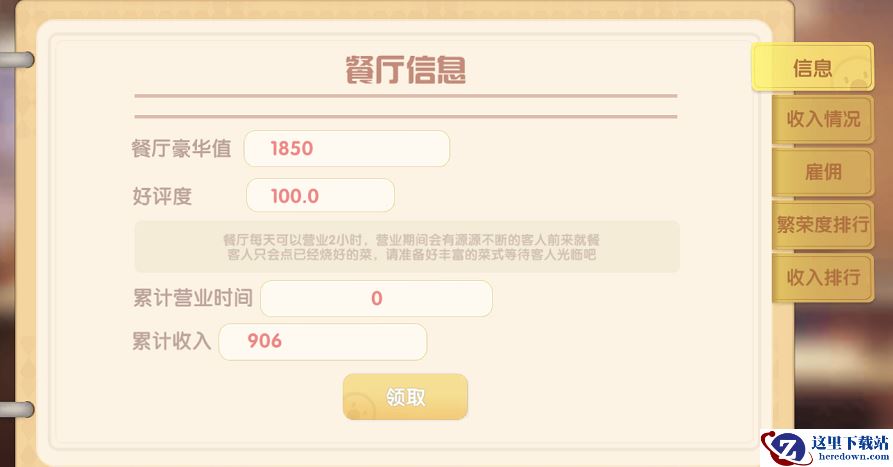 大家在经营餐厅时可以使用高级装饰提高繁荣度,并且做菜的时候看一下当日流行菜,多做一些可能评分。