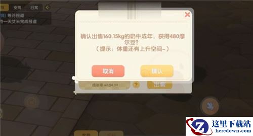 最后会弹出系统提示窗口,点击【确认】按钮就能把牛给卖掉了,480摩尔豆一头。