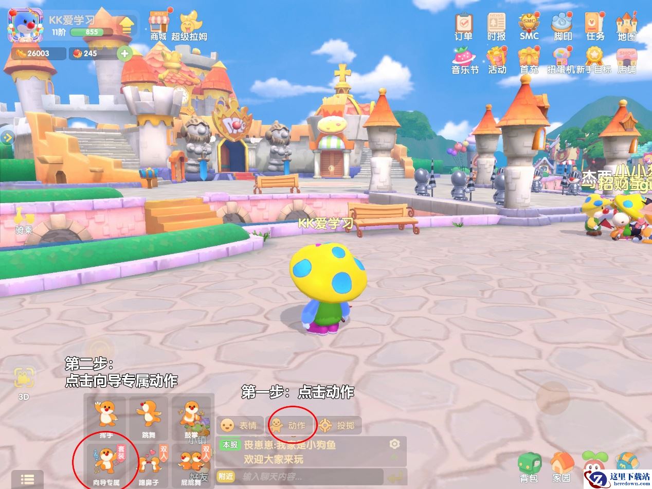 然后到达指定地点,打开动作界面,里面会有一个向导专属动作,点击便可以进行向导的宣传工作啦!