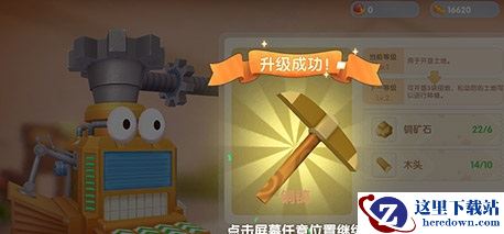 此时可以看到一个机器,然后靠近,就可以在工具界面,然后来消耗摩尔豆进行升级,升级之后的铜稿可以铲更坚固的矿石,让玩家得到更高级的资源。